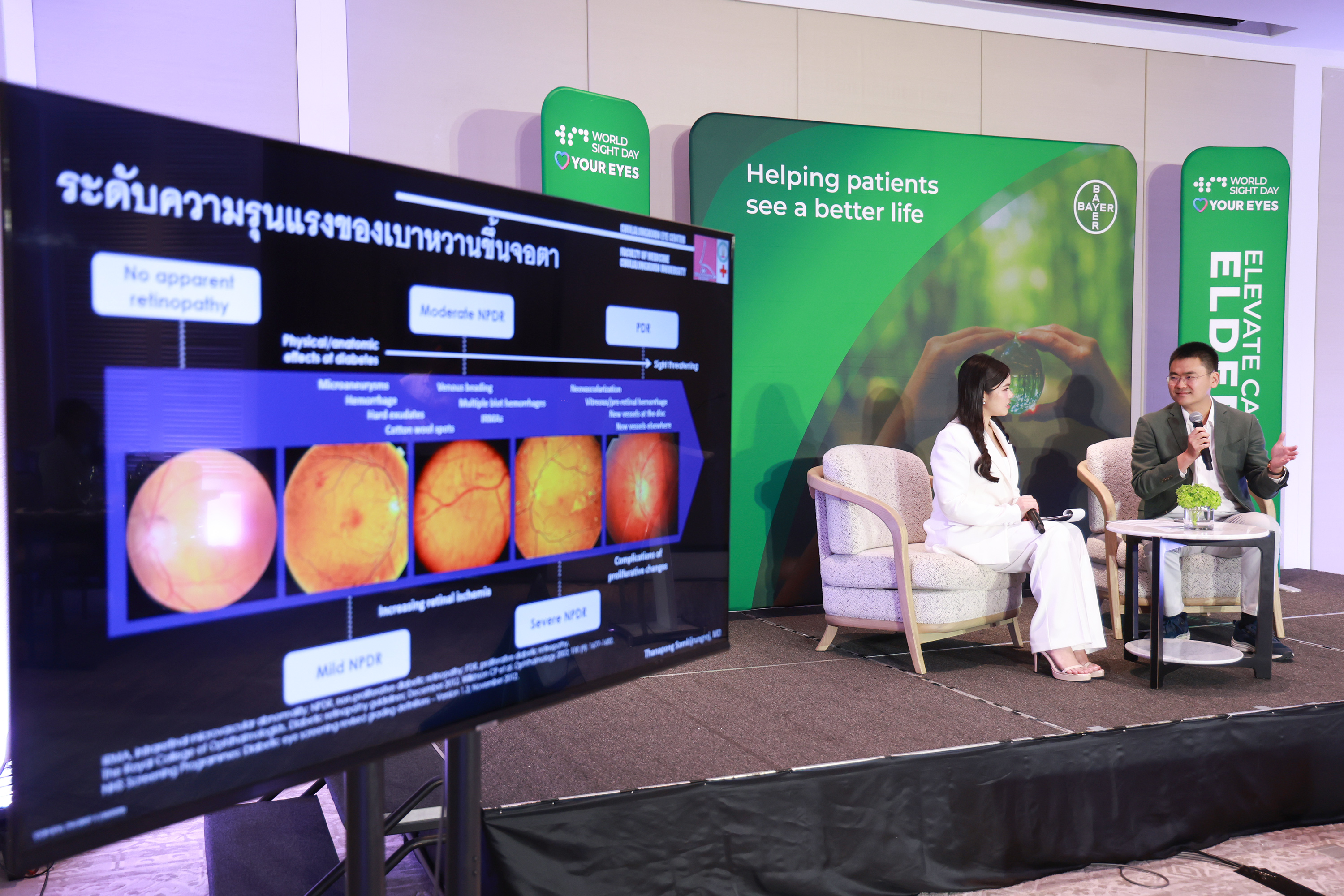 ด้าน ภญ.ชัชชญา ฉัตรรัตนารักษ์ Head of Focus Brand แผนกฟาร์มาซูติคอล บริษัท ไบเออร์ไทย จำกัด กล่าวเพิ่มเติมว่า ไบเออร์ในฐานะบริษัทชั้นนำด้านนวัตกรรมยาและเวชภัณฑ์ มุ่งมั่นในการสนับสนุนการสร้างความตระหนักรู้เกี่ยวกับโรคทางจอตา และส่งเสริมให้ประชาชน โดยเฉพาะกลุ่มเสี่ยง เข้าถึงการตรวจคัดกรองและการรักษาที่มีประสิทธิภาพ เพื่อป้องกันการสูญเสียการมองเห็นที่สามารถหลีกเลี่ยงได้
