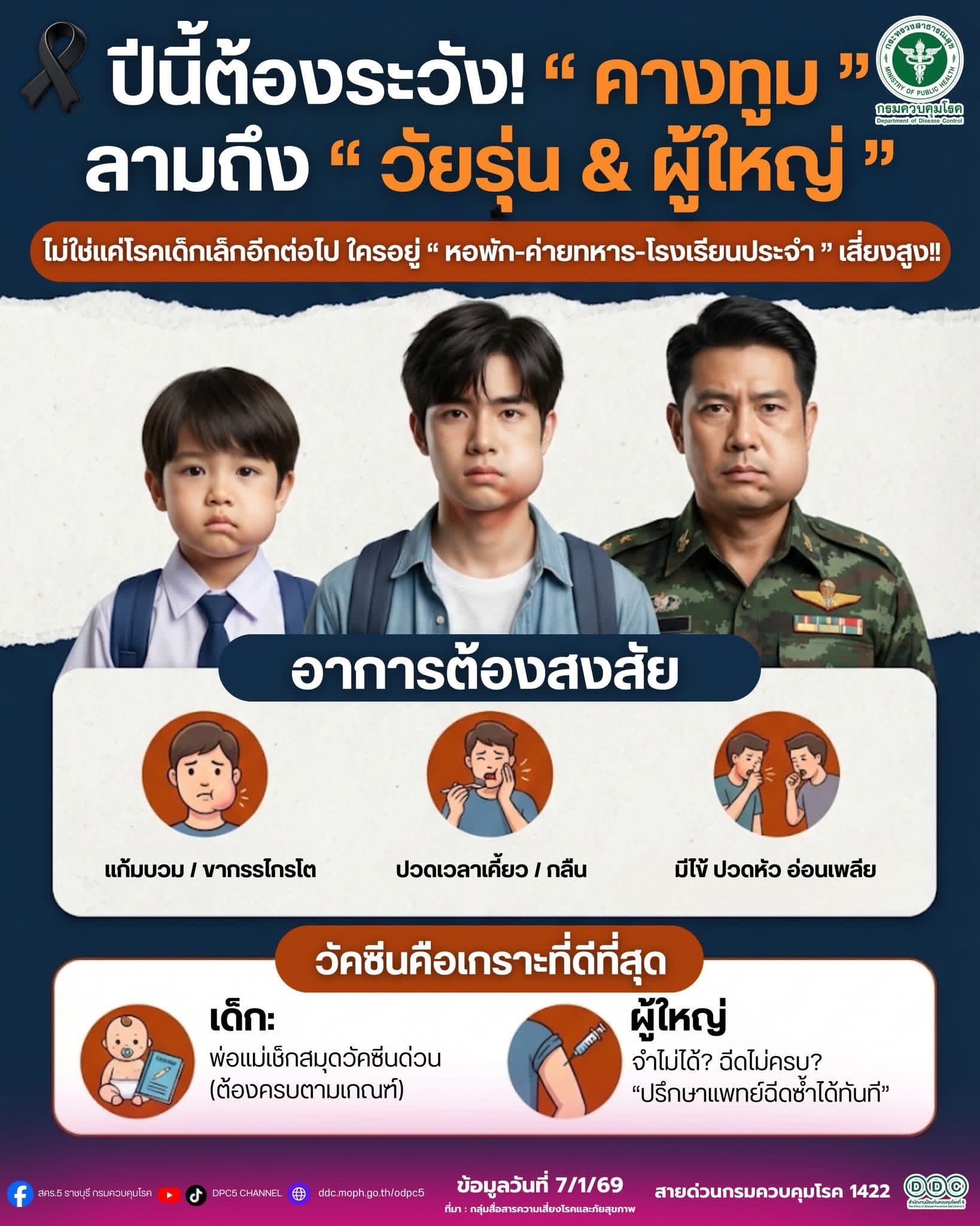 อย่างไรก็ตามโรคคางทูม เป็นโรคที่พบการระบาดอย่างต่อเนื่อง และไม่ได้มีความรุนแรง แต่ในช่วงที่มีการระบาดของเชื้อไวรัสคางทูม แนะนำให้ประชาชนปฏิบัติตามมาตรการทางสาธารณสุข เพื่อป้องกันการติดเชื้อ โดยการสวมหน้ากากอนามัย หมั่นล้างมือ และหลีกเลี่ยงการใช้ของส่วนตัวร่วมกับผู้อื่น จะสามารถป้องกันการติดเชื้อและการแพร่เชื้อไปสู่บุคคลอื่นได้